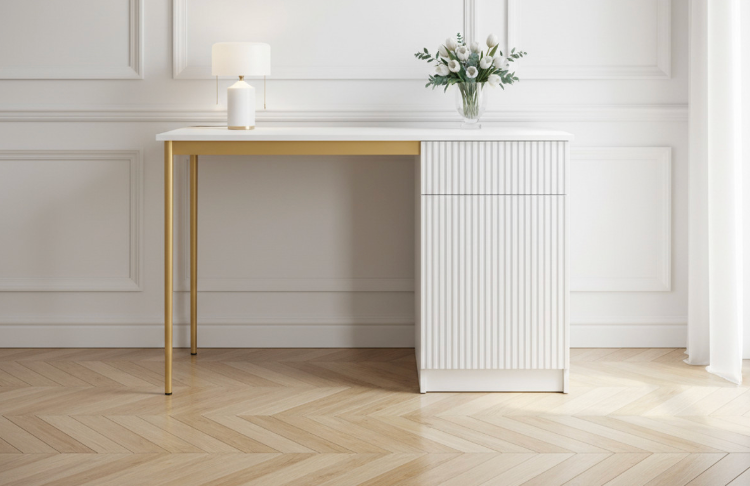 Offrez-vous un bureau mariant un style inimitable et une grande fonctionnalité avec la collection KASHA. Fort d’un design résolument moderne, avec ses coloris de caractère et surtout ses façades en relief très tendance, cette collection saura se démarquer dans votre pièce et sublimera sans mal votre décoration d’intérieur. Le tout, en vous offrant des produits très pratiques, disposant de nombreux espaces de rangement, vous permettant de facilement conserver un intérieur bien rangé !